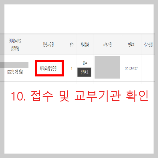 ☞간편 인증을 마치면 민원신청 내역과 교부기관을 확인하실 수 있습니다.