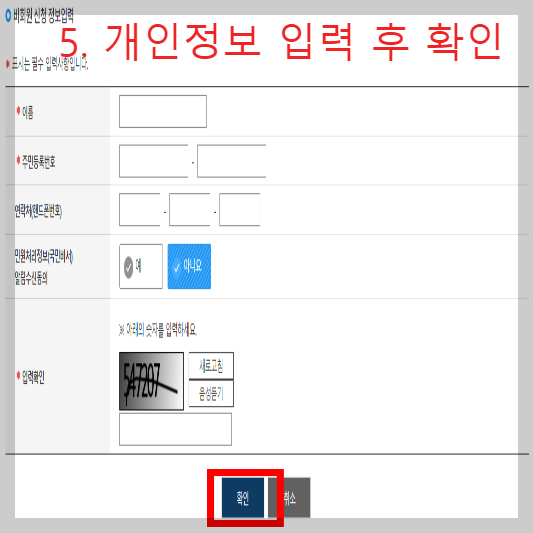 ☞ 개인정보 입력 후 확인버튼을 누릅니다.