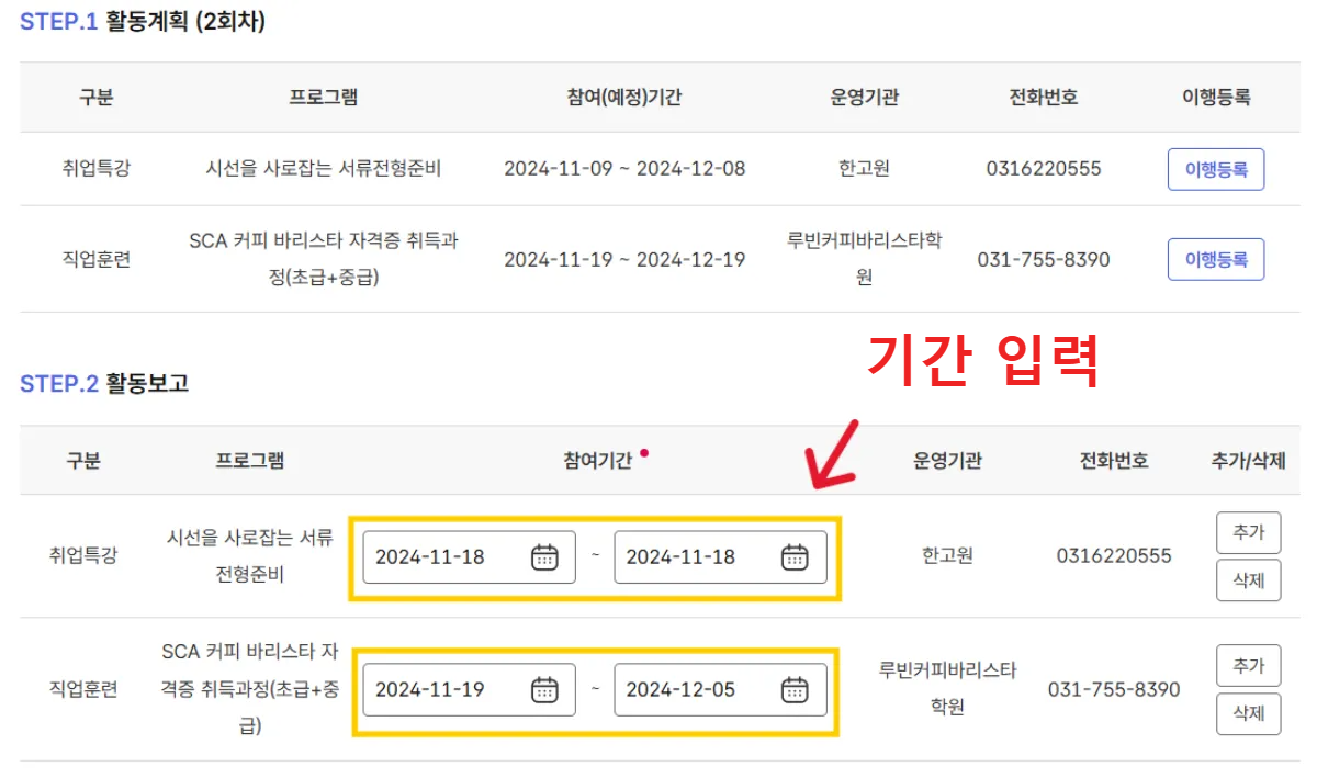 STEP.2 활동보고에 참여기간 입력