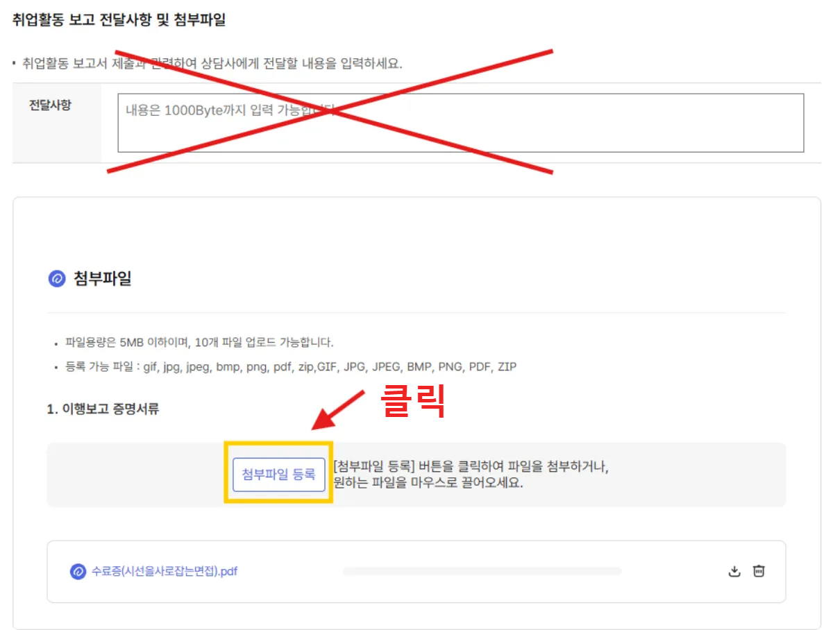 취업특강 수료증 첨부파일 등록