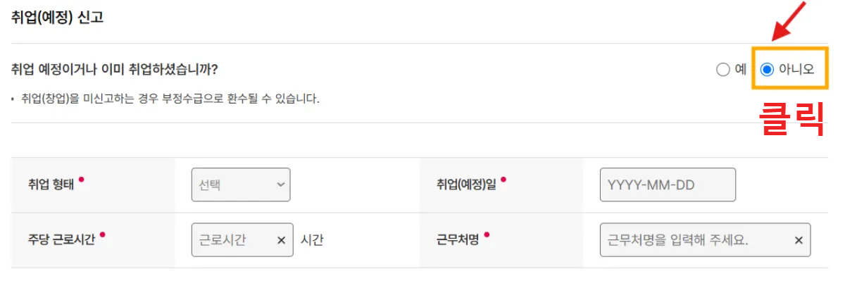 소득 발생, 취업, 가족 수당 여부 확인 후 체크