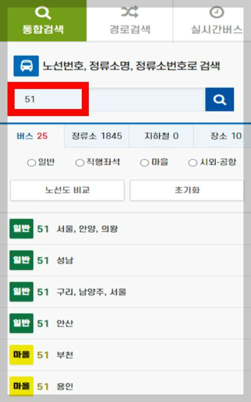 검색창에 내가 탑승한 버스 번호를 입력을 해줍니다.