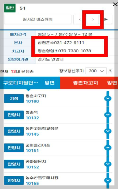 다음으로 탑승한 버스의 운수회사 연락처를 찾아야 합니다.