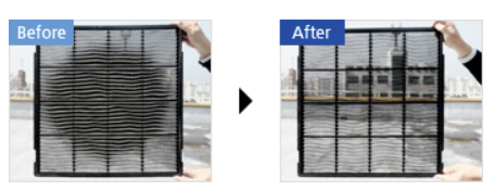 | 1. 필터 전면 그릴에 위치하여 에어컨으로 흡입되는 먼제 등 이물질 유입을 방지하는 촘촘한 그물 형태 거름망 |
