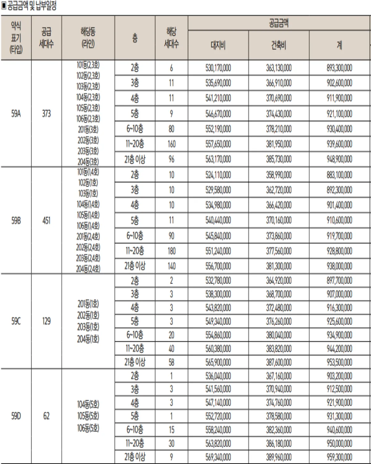 (*입주자 모집공고일까지 아래의 예치금이 충족되면 청약이 가능합니다.)